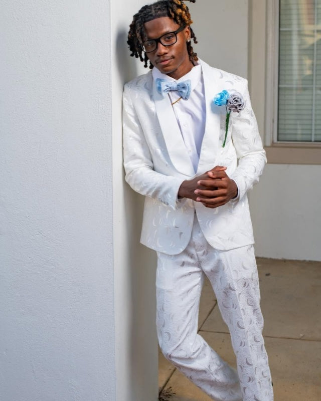 Newest White Jacquard Shawl Lapel Wedding Men Suits