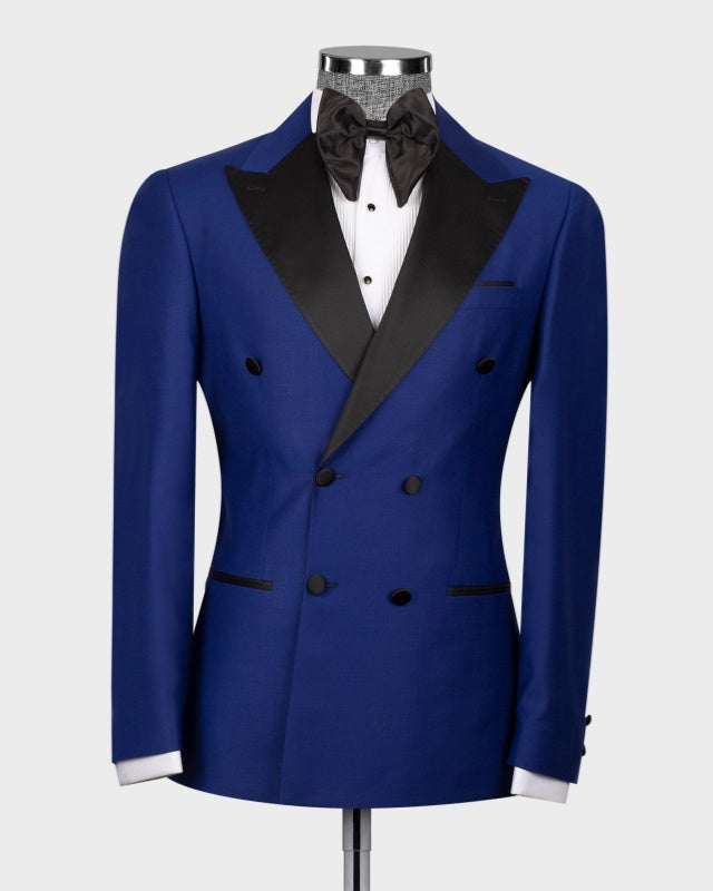 Royal Blue Double Breasted Peaked Lapel Close Fitting Prom Suits